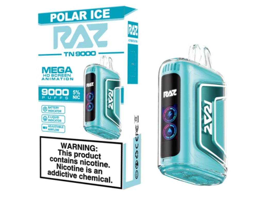 Come and explore the sensational RAZ TN9000! With the RAZ TN9000, you will discover a new and true pleasure of vaping as it strikes the ideal balance between throat hit and flavor, delivering an intense yet smooth vaping experience! With an impressive 12mL e-liquid capacity, 9000 puffs, and a 650mAh battery RAZ ensures a long-lasting vaping experience, delivering uninterrupted pleasure. Each inhale provides a potent nicotine hit, with a 5% nicotine concentration (50mg). RAZ 9000 features an adjustable airflow system where you can customize your own hit resistance; from an airy delightful hit or straight MTL. The RAZ TN9000 offers a 0.96" HD display screen that provides crystal-clear visuals of your battery life, e-liquid level, while giving you that cool aesthetic feeling. The RAZ TN9000 will give you an extraordinary vape experience with 24 different flavors to choose from!