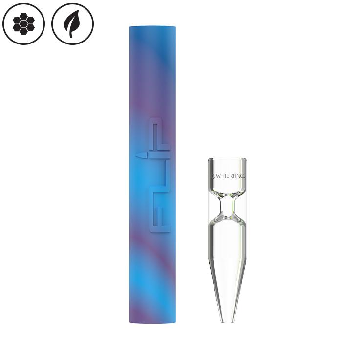 The Flip Tip is a unique Patent Pending glass tip that only works with the Flip silicone tube. Special grooves on the inside of the silicone tube allow for perfect insert for either the chillum or straw end. The glass tip is made out of high quality Pyrex glass and is 2" tall. Pyrex is great for low temperatures. If you like to use high temperatures with your glass straws you may want to check out the Quartz Flip here